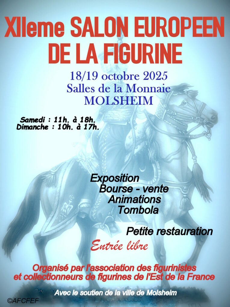 Liste (à actualiser) des participants au salon de Molsheim (par ordre alphabétique) AFCFEF … Association organisatrice 42° BLACK WATCH – Massimo COSTA … Editeur figurines 1/72eme (I) AFMK… Association (F) BELLER Dieter … Editeur plats d’étain (D) CA VA ALLER … magasin vente figurines (B) COMPAGNONS DE STE ODILE …Association (F) DERNIER CARRE … association franco-suisse […]